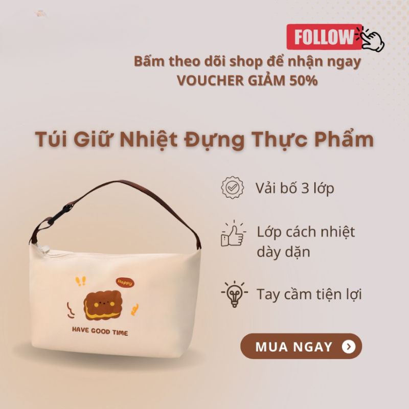 - Giữ nhiệt tốt: Nhờ lớp lót bạc bên trong, túi có khả năng giữ nhiệt từ 2–4 giờ, giúp cơm và thức ăn luôn ấm nóng.