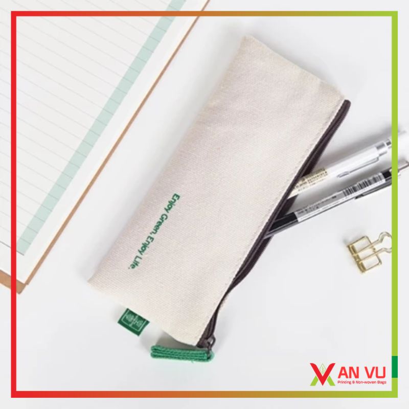 Túi đựng bút vải canvas được may từ vải canvas cao cấp, bề mặt mịn, bền sợi, phù hợp sử dụng lâu dài và thân thiện với môi trường.