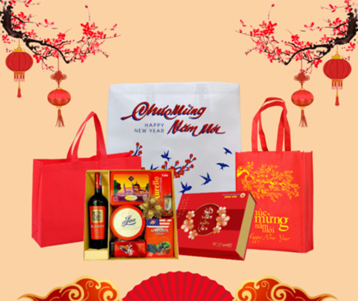 Túi đựng quà Tết vải không dệt là sản phẩm đa năng – tiện dụng – thẩm mỹ cao, được ưa chuộng trong: