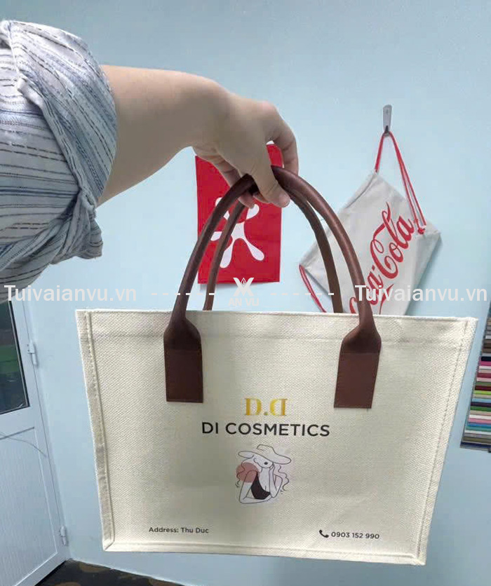 Form cứng – đứng dáng: Bề mặt sợi thô + cấu trúc dệt → giữ form tốt, không bị “rụ mềm” như vải cotton mỏng, Rất phù hợp làm túi quà tặng cao cấp