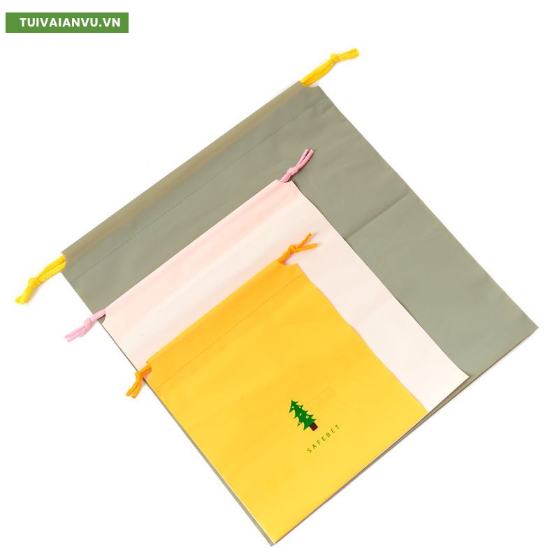 Vải dù 210T hoặc 420D được sử dụng phổ biến, vừa đảm bảo độ bền vừa dễ in ấn logo, hình ảnh thương hiệu. Ngoài ra, túi dây rút còn rất dễ gấp gọn, có thể bỏ vào balo hoặc túi xách khi không sử dụng.